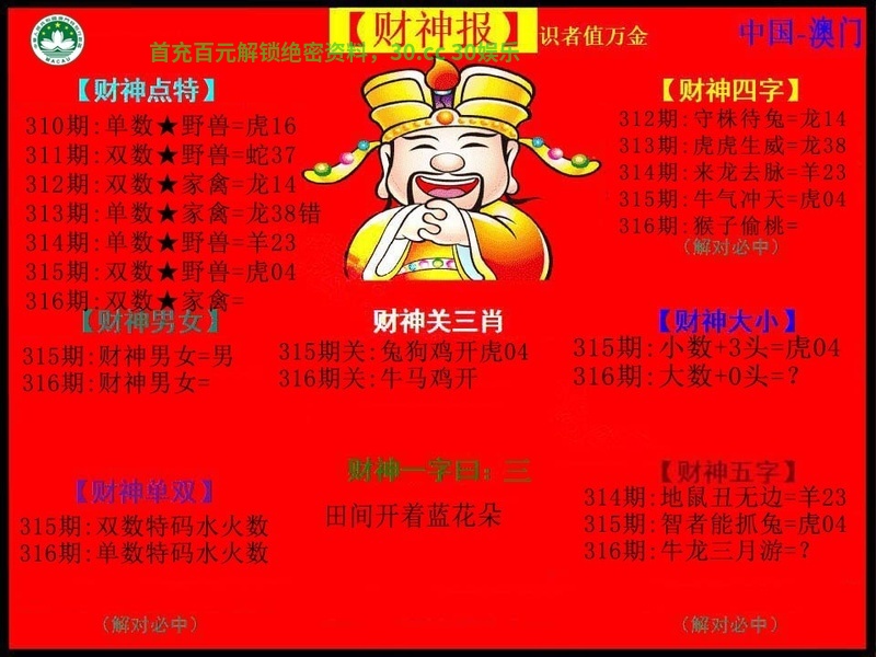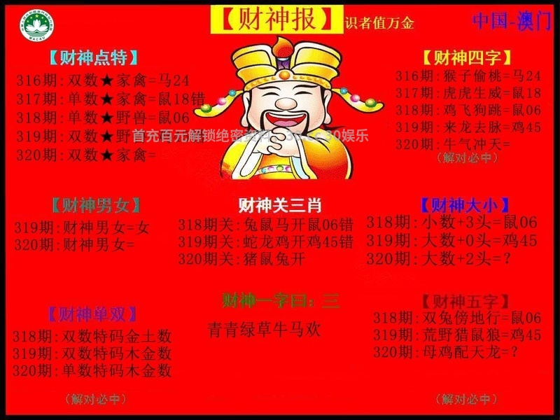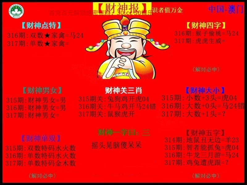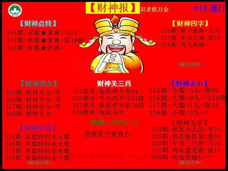 | 318期:【前后四肖】开:鼠06准 前【牛鼠兔龙】后【狗猪羊鸡】 |